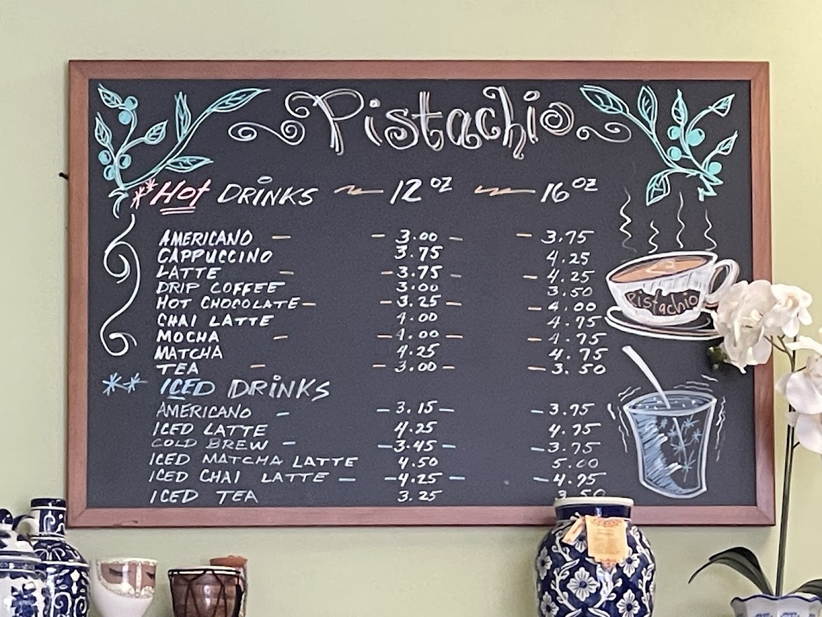Pistachio Organic & Coffee offers a delightful range of treats, perfect for those seeking both indulgence and freshness. The Pistachio is a standout, boasting a unique flavor that sets the tone for the restaurant's menu. For dessert lovers, the Pumpkin Pie offers a seasonal, comforting flavor, while the Chocolate Chips Cookie Dough is a decadent option for those with a sweet tooth. The Cinnamon Bun is a warm, soft classic that’s sure to bring a smile, perfect for pairing with a hot drink. For something refreshing, the Classic Watermelon provides a sweet, light option to balance out the richness of the other dishes. Whether you’re stopping by for a quick snack or looking to indulge in some comforting sweets, Pistachio Organic & Coffee’s menu has something to satisfy every craving.
